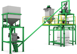 Applicon builds flexible screw conveyors in 3,4, 5 , 6" nominal diameters, with UHMW PE or urethane housings, or in all stainless construction. We adapt the inlets to receive product from bag dump stations, bulk bag dispensers, portable bins and hoppers, rotary airlock valves, live bottom, stir bottom, or activated bins. The discharge (headbox) can be designed for discharge.