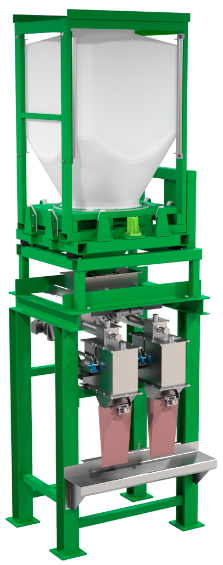 • Vibrated filling, to de-aerate or densify in the container. This works best when used with a pre-weighed batch, but can also be done with a gross weigh scale, at a slower rate.