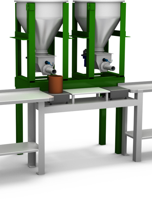 • Single or multiple net weigh scale hoppers operating, with blending effected in transit between the scales and the container.